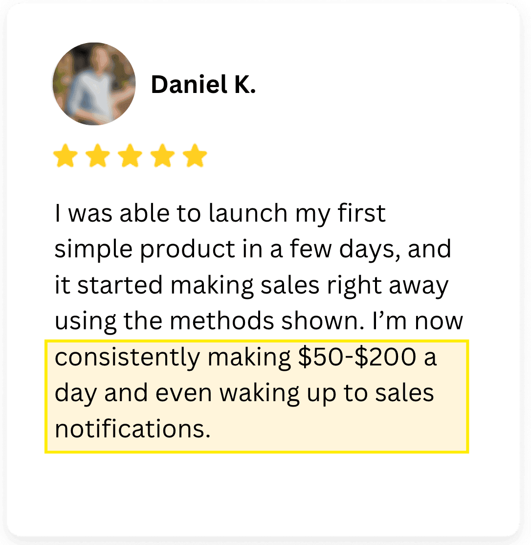 I’m now able to generate consistent daily sales, generate $100-$300 per day...